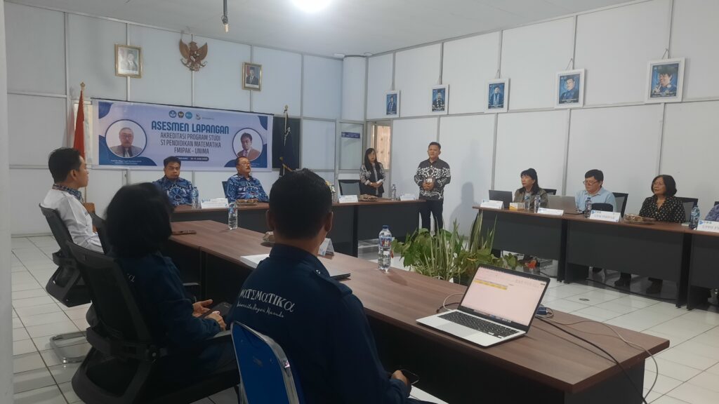 Tondano— Program Studi Pendidikan Matematika, Fakultas Matematika, Ilmu Pengetahuan Alam, dan Kebumian (FMIPAK), Universitas Negeri Manado (Unima), secara resmi memulai proses asesmen lapangan akreditasi pada hari Selasa, 10 Juni 2025. Visitasi ini merupakan bagian dari tahapan penilaian oleh Lembaga Akreditasi Mandiri Kependidikan (LAMDIK) sebagai upaya strategis program studi dalam meraih peringkat akreditasi Unggul.